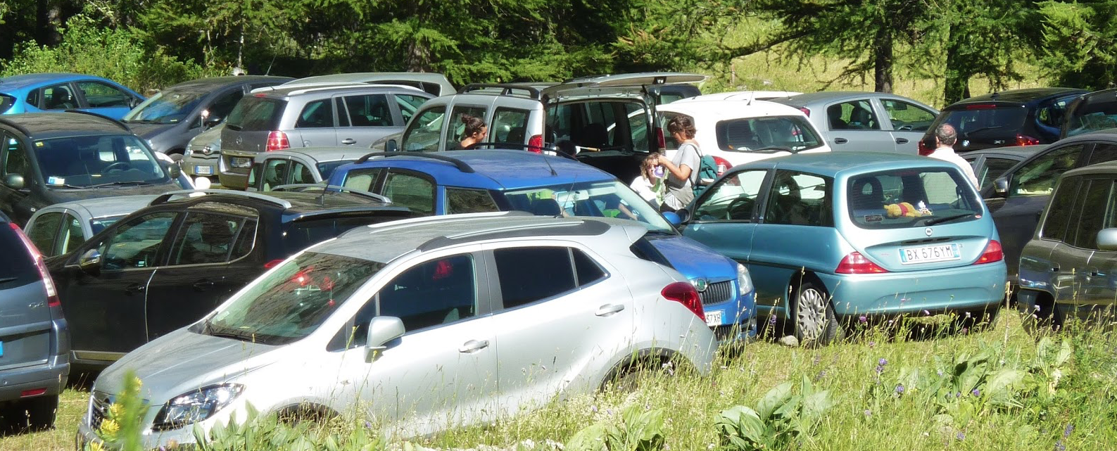 Valle Stretta. Parcheggio nei prati e nei pascoli. Troppe auto, regolamentazione quasi inesistente